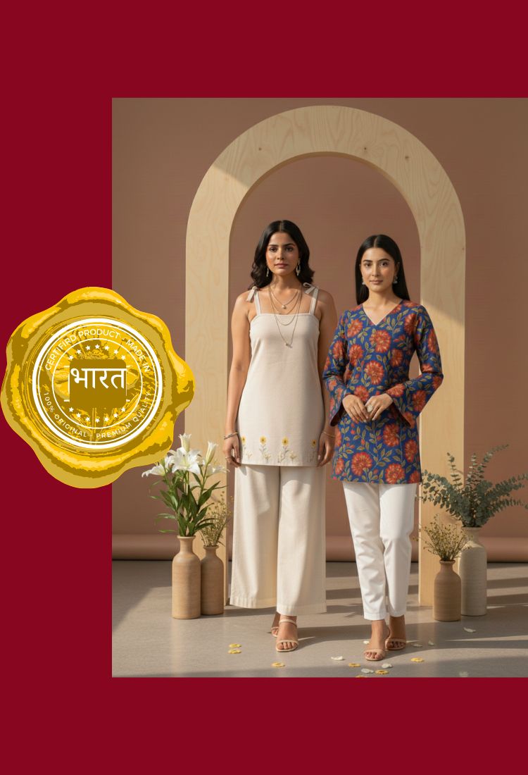 We use breathable, natural fabrics like cotton, linen, and handwoven blends — rooted in Indian craft, made for everyday ease.